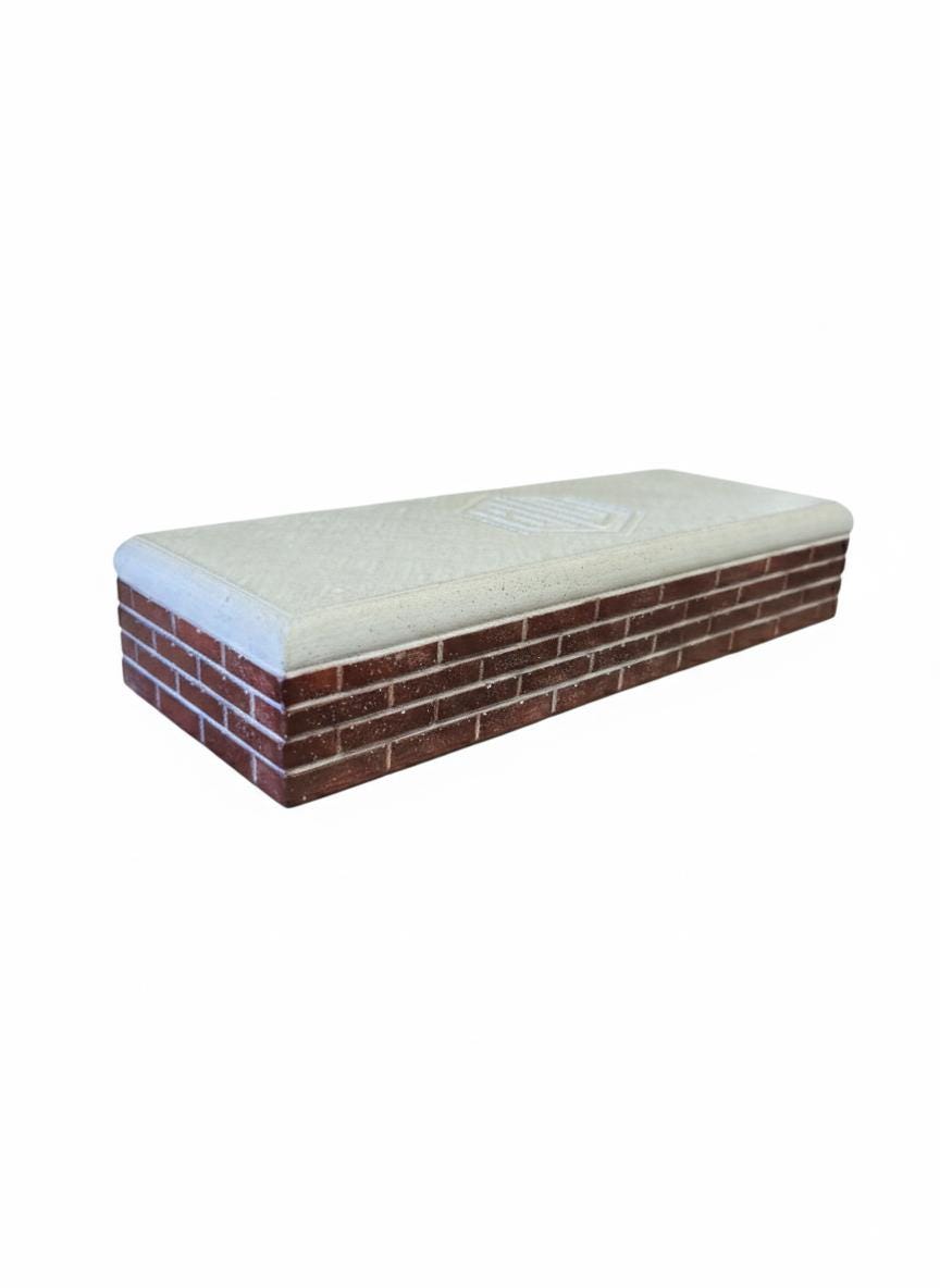 Classic, rustic clean, and rooted in that old-school brick feel. The School Brik features traditional brickwork with bold mortar joints that stand out beautifully in contrast. Topped with a smooth slab of concrete, this ledge echoes the kind of benches you'd find outside a mid-century public school—simple, solid, and skate-ready.