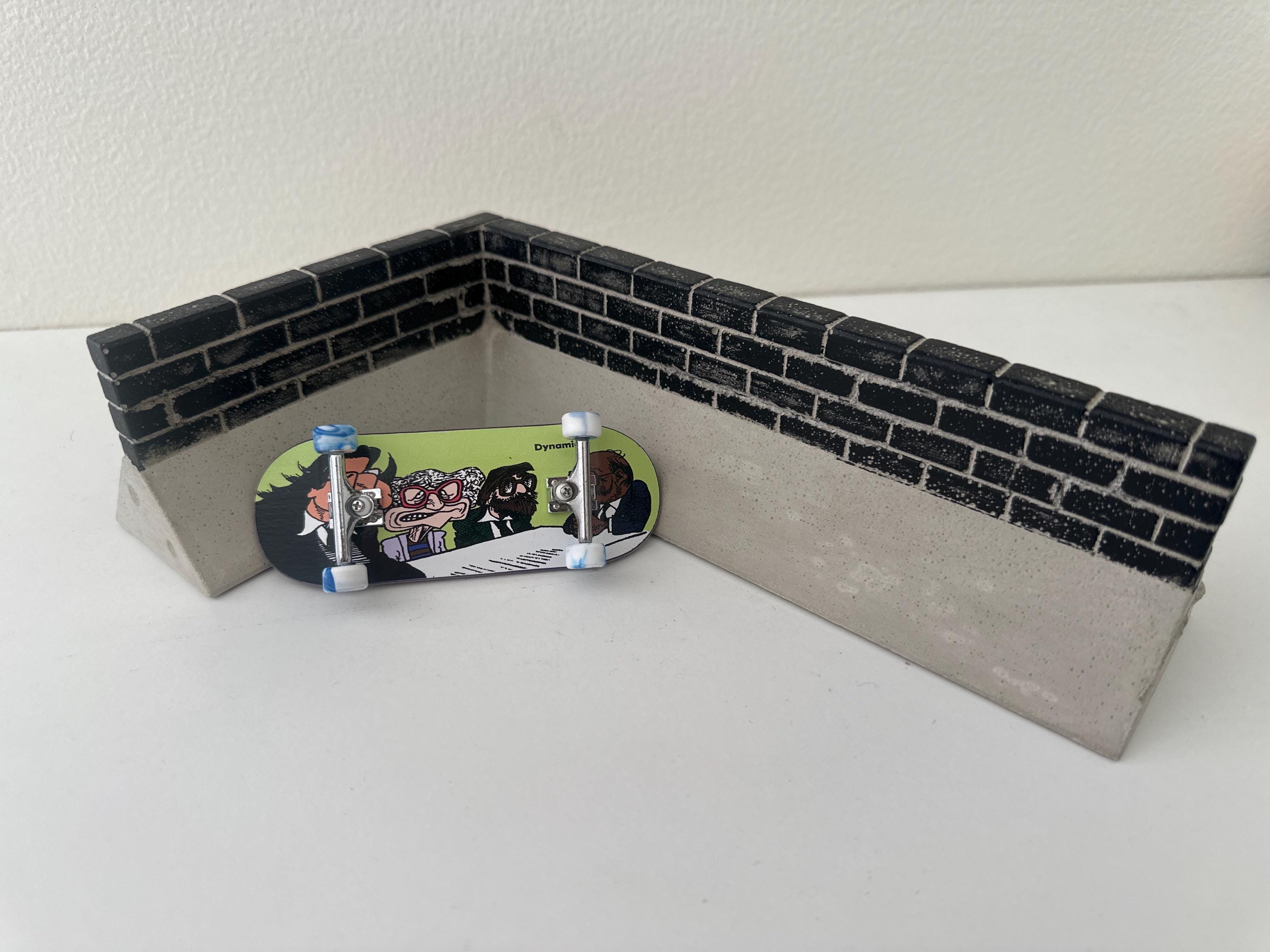 This piece replicates the ground-level corner of a commercial brick building, capturing the kind of street spot every fingerboarder dreams about finding. An authentic brick-textured wall, designed for gritty grinds and wallrides, meets a seamless concrete ramp base that wraps around the bottom edge — just like the real thing.