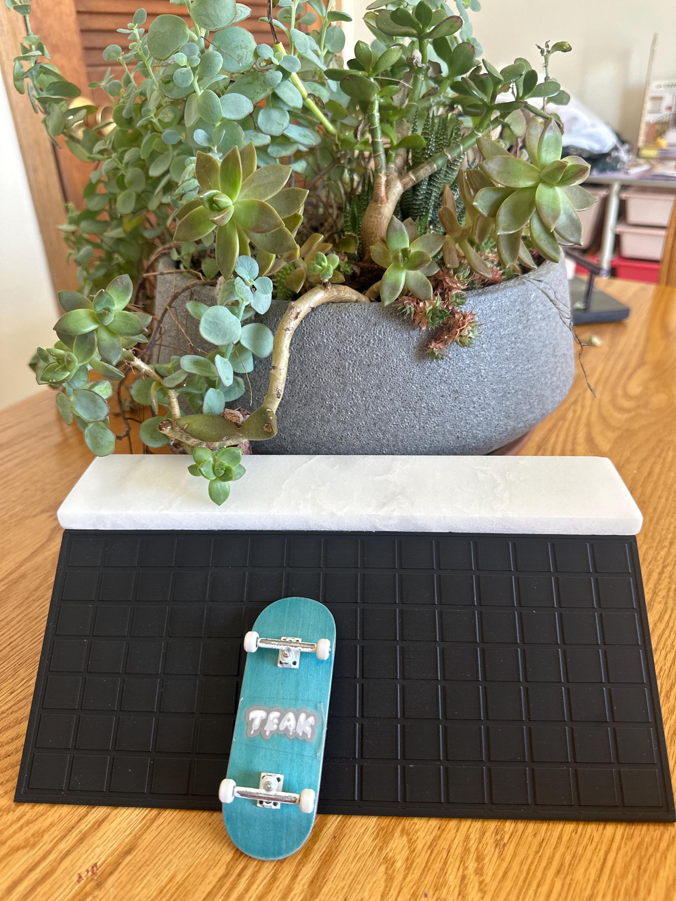 -The bottom portion of this obstacle is 3D-printed using high-quality PLA. While PLA is strong and durable for normal fingerboard use, avoid exposing the base to excessive heat (sunlight, car interiors, heaters) as PLA may soften or warp at high temperatures. This product is designed for indoor use only. Minor surface variations are normal due to the 3D-printing process and do not affect performance.
