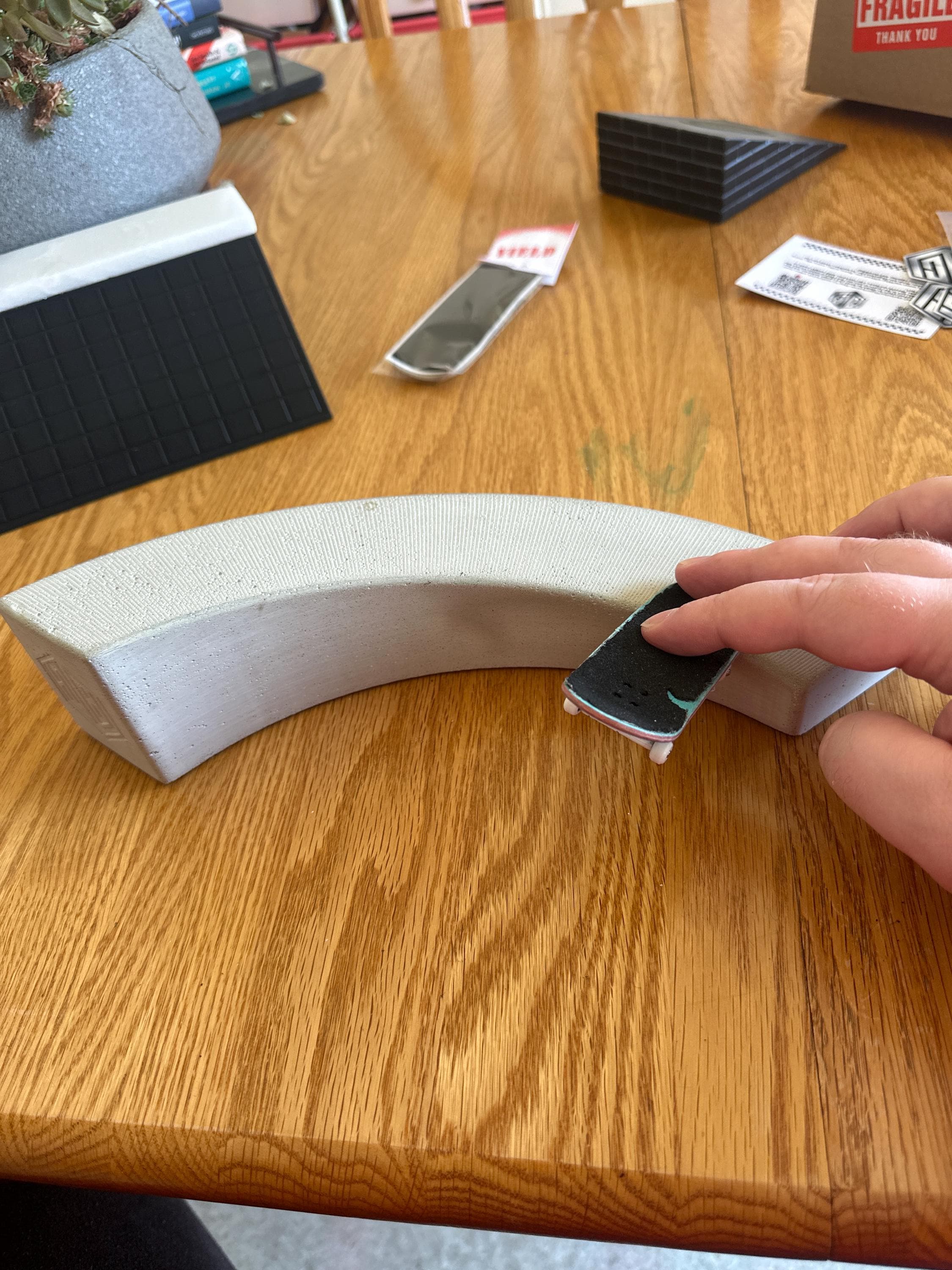The curve encourages creativity — long crooks, flowing boardslides, manuals into exits, and combo lines that feel natural and satisfying. It’s heavy, stable, and feels like a real skate spot scaled down for fingerboarding.