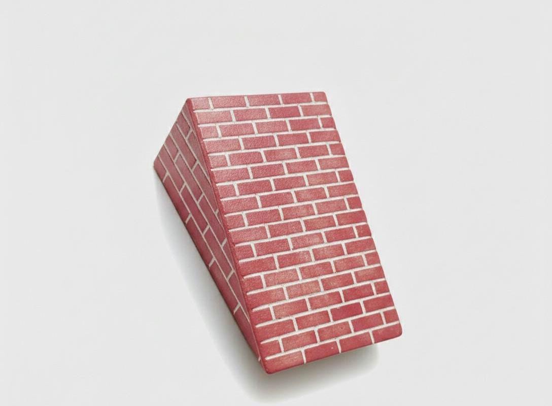 This isn’t a toy-style kicker — it’s a scaled-down masonry launch. The incline is long and mellow so you can actually set up and pop comfortably, not just toss tricks at it. Perfect for flip-in lines, bank-style approaches, or using it as a connector piece between obstacles, and for satisfying grinds with brick texture sound feedback.