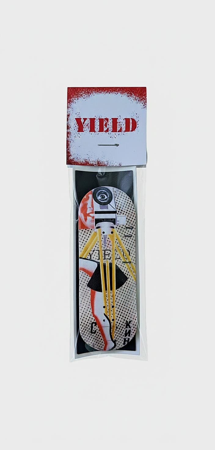The YIELD™ “Cinema” Deck is a tribute to early cinema — the era of experimental visuals, halftone prints, surreal framing, and imperfect analog beauty. The graphic feels like it was lifted from an archival film poster, aged in a theater basement, then reinterpreted for something meant to be ridden.